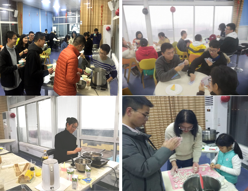 有了老师们的大力支持和前期宣传,本次活动得到全体同学的响应。大家一起自制了不同地域和风格的特色美食,其中不仅有节气特色美食“北方水饺”、“手工汤圆”和“冬酿酒”。还有多种具有公司或公司特色的美食,例如公司发酵实验课程中开发的“二发面包”,全校公选课《营养与健康》上广受好评的“台式黑芝麻绿豆糕”和“坚果蔓越莓饼干”,公司精准扶贫项目中诞生的高科技“纯造普洱茶”,由本班大创团队成员自制的“即食香菇罐头”也派上了用场。当然,同学们还根据自己的喜好,购买了各类食材和零食,营养火锅、麻辣火锅、安心鲜榨果汁、健康鲜奶奶茶、配合火锅的仙草冻、香气四溢的热干面…各种美食发掘了同学们的动手能力,也让天南海北的同学都能体会到自己家乡的年味。除此之外,班委们还精心准备了许多小游戏和奖品,让活动内容更加丰富。