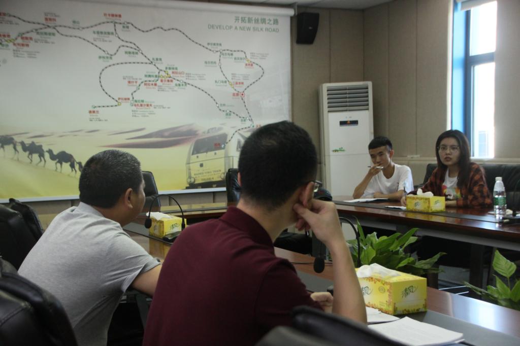 天盟公司是“义新欧”中欧班列的主要负责方,也是国内唯一一家开行班列的民营企业。团队首先观看了天盟实业公司关于中欧班列的相关宣传片,对”义新欧“中欧班列和义乌市的关系有了更直观的了解。接着,实践队与天盟实业有限公司办公室主任刘明明进行了深度交流。刘主任介绍到,“义新欧”中欧班列一切以市场需求为前提,运营状况良好,能够实现快速通关、快速换轨,同时出口货源稳定丰富,货源来源地多样,并呈现出不断增长的态势,促进义乌及其周边地区的发展,交通基础设施的溢出效应体现明显。但刘主任指出,各地班列无序竞争,甚至出现低价抢夺义乌货源的情况,这为“义新欧”中欧班列的发展带来了些许压力。另外,当前欧盟与俄罗斯制裁与反制裁的行为对班列进口货物种类产生影响,由此可以看出国际关系对中欧班列能否顺利运营的影响颇深。解决中欧班列的无序竞争,提高班列运输效率,这是未来实现中欧班列市场化运营的重要前提,稳定的国际关系是中欧班列顺利开行的强劲保障。关于中欧班列接下来发展规划问题,刘主任表示天盟公司在未来会形成全产业链,助力企业产业升级。同时,“义新欧”中欧班列作为唯一一个私营企业运营的班列,将不遗余力地继续积极支持国家“一带一路”建设,并为实现人类命运共同体贡献一份力量。