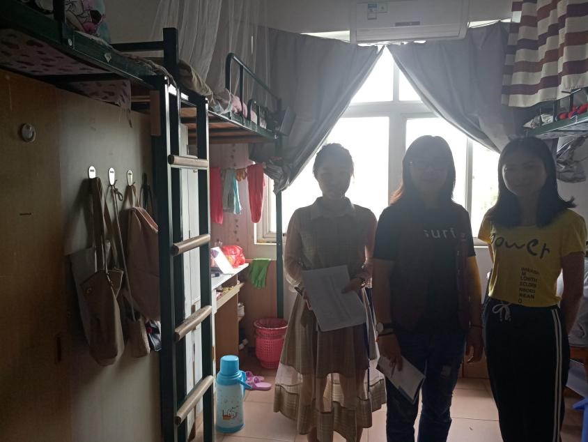 检查过程中,大部分宿舍整齐有序,屋内未摆放纸箱、鞋盒等杂物,宽敞干净。有同学对桌椅、床铺进行了简单装饰,更显温馨舒适。 个别宿舍存在杂物较多,堆放随意,屋内异味较重等现象。在检查韵苑四栋时,新来的宿管阿姨为了解本栋楼毕业生的情况,主动要求一起走访查看宿舍。