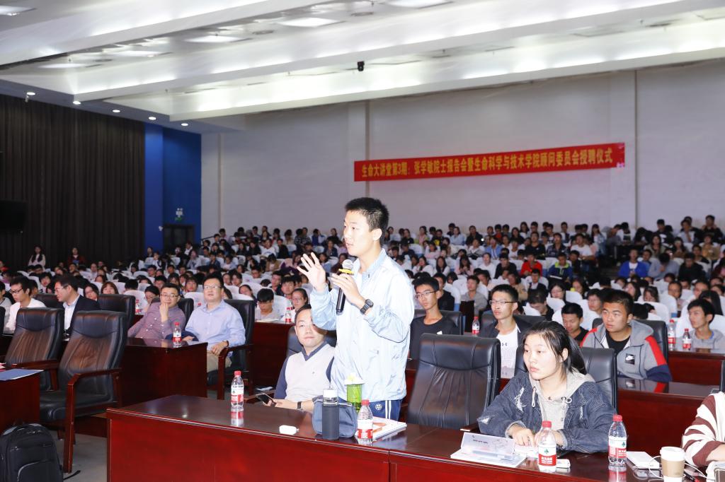 在互动交流环节,张学敏院士就本科生该如何入手科学研究等同学们感兴趣的问题一一进行了回答,现场气氛热烈。