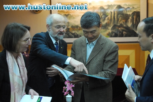 内尔夫妇询问了有关中国高等教育体系的情况。当得知华中大就像“城市”一般,不但有大学,还有幼儿园、附小、附中等后勤配套设置时,内尔教授有些意外。他饶有兴致地问起附中的人才培养情况,并详细询问了华中大的办学规模以及对高中生的录取比例等情况,李培根及相关负责人一一作了介绍。随后,双方就中德大学体系的差异进行了交流,并交换了意见。