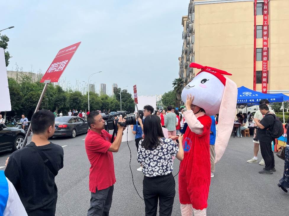 武汉台记者采访扮演“兔小生”的志愿者