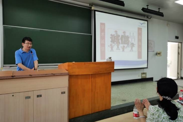 公司副经理赵元弟教授代表公司向全体研究生新生表示热烈欢迎,从公司发展历程、培养特色等方面向同学们介绍了公司的基本情况和公司产品模式,并对新生进行了学术诚信教育。他指出学术诚信是科学研究的基石,结合实际案例从主客观两方面分析了学术诚信缺失的原因及严重后果,勉励全体研究生新生严格遵守学术道德和学术规范,扣好科学研究的第一粒扣子,成长为有理想、勇创新、敢担当的华中大生命人。