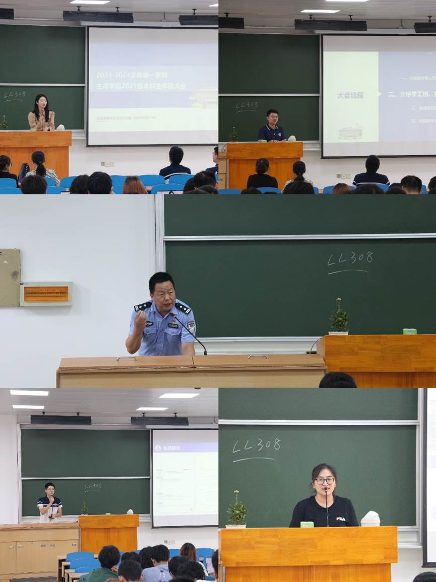 9月14日下午,yl7703永利本科2021级在东十二楼F101教室召开年级大会。大会邀请了喻家山派出所熊警官、yl7703永利“天生我才”生涯规划室指导老师、研究生辅导员冷康鑫以及2021级教务老师马业菲、谢静为同学们带来相关主题教育,2021级辅导员郑方、岳琦主持。大会内容包括安全知识普及、生涯规划指导、教辅人员变更介绍、教务工作提示等。两位辅导员寄语同学们在大三的关键时间节点“坚定方向,乘风破浪,有所收获,有所成长。”