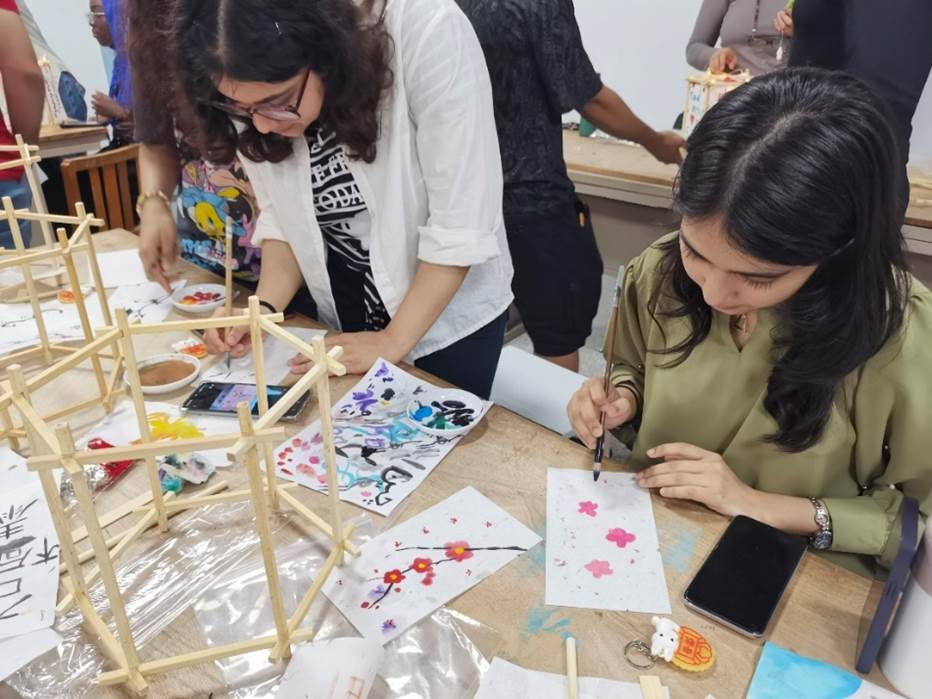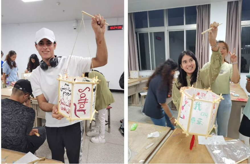 活动现场,同学们观看中秋介绍视频、交流中外文化、制作中秋灯笼、书写祝语绘画图案。擅长国画的中国员工现场展示水墨之彩,来自伊朗的同学表演的吉他弹唱收获全场的掌声,来自伊拉克的同学也一展其绘画天赋带来充满异域风情的画作。整场活动都以中外员工热情交流,建立跨越国界的友谊。