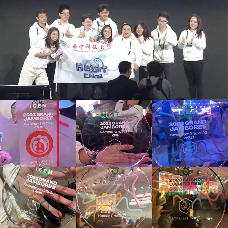 北京时间11月5日,生命科学领域最负盛名的国际学科竞赛国际遗传工程机器设计大赛(iGEM)2023年全球总决赛在法国巴黎圆满结束。yl7703永利‍‍‍‍‍‍‍‍疫情后首次派出2支本科生竞赛团队20余人出国参赛,创造历史最佳成绩!其中HUST-China队从400余支来自全球各国高校的队伍中脱颖而出,获评本科组TOP10及大赛金奖,该团队同时历史性地一次摘得气候危机赛道最佳奖(该赛道排名第一)和5项单项最佳奖、2项单项最佳奖提名,分别是:合成生物学新组合元件最佳奖、项目综合实践最佳奖、项目汇报展示最佳奖、项目推广视频最佳奖、iGEM全场人气奖,以及项目硬件设计最佳奖提名、项目展示wiki网页最佳奖提名,基本囊括大赛全场各类单项奖项。中法高校联队HUST- UEVE-UPSaclay首次参赛,亦获得大赛银奖。