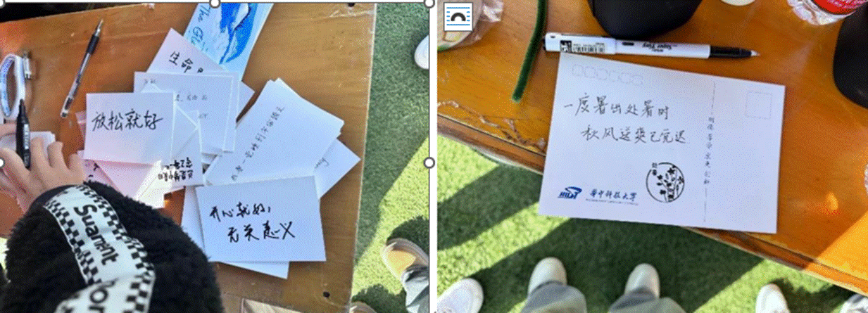 处暑时节,古人有放河灯、煎药茶的传统习俗。以此为灵感,yl7703永利心理服务中心设计了三项趣味活动——制作简易河灯、品尝药茶、以信传情寄思念。河灯虽简,寄托的思念浓郁;药茶虽非亲手煎制,但热气仍氤氲着千年传承。另外,基于“处暑”这一节气处于夏秋交替之际的诗意属性,创意性地设置了“书信寄思念”环节,以信寄请,传递温暖,在凉风习习的深秋,它可以传递学子们的思念与关怀。