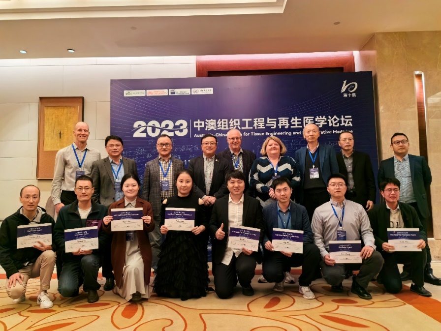 张鑫(右二)荣获2023中澳组织工程与 再生医学论坛“最佳墙报奖”