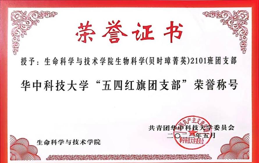 2023年5月 永利官网“五四红旗团支部”荣誉称号