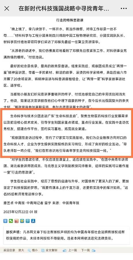 同时yl7703永利这支实践队的故事作为永利官网团委“科技强国青年观察团”的组成部分,被《中国青年报》报道。该社会实践团队也获得“永利官网思政课暑期社会实践项目”重点项目立项支持!